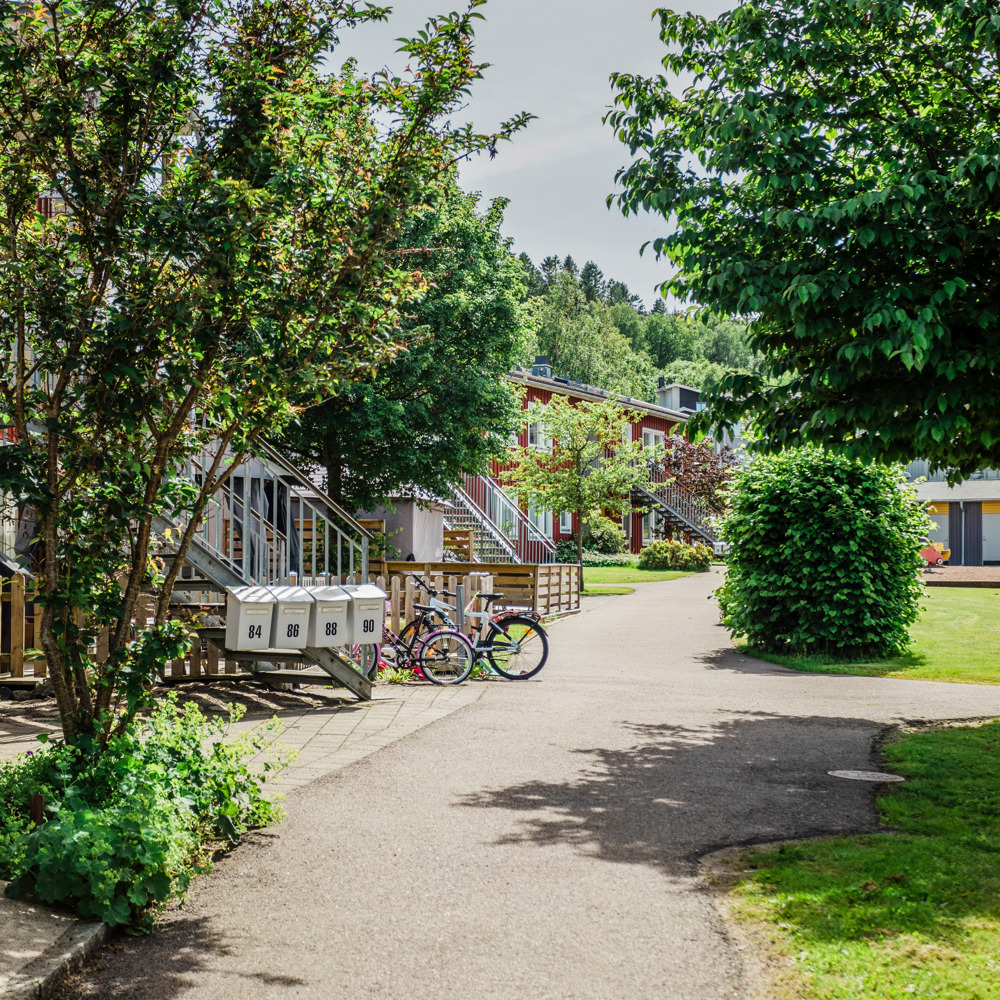 Här i södra delen av Kållered bor du lugnt och skönt, granne med skogen och Sandsjöbacka naturreservat. Tvåvåningshusen har radhuskänsla. Varmvatten samt uppvärmning av bostaden bekostas av hyresgästen själv via eget fjärrvärmeabonnemang. Det är nära till Kållereds köpstad med bland annat Ikea. Det är också nära till allmänna kommunikationer.