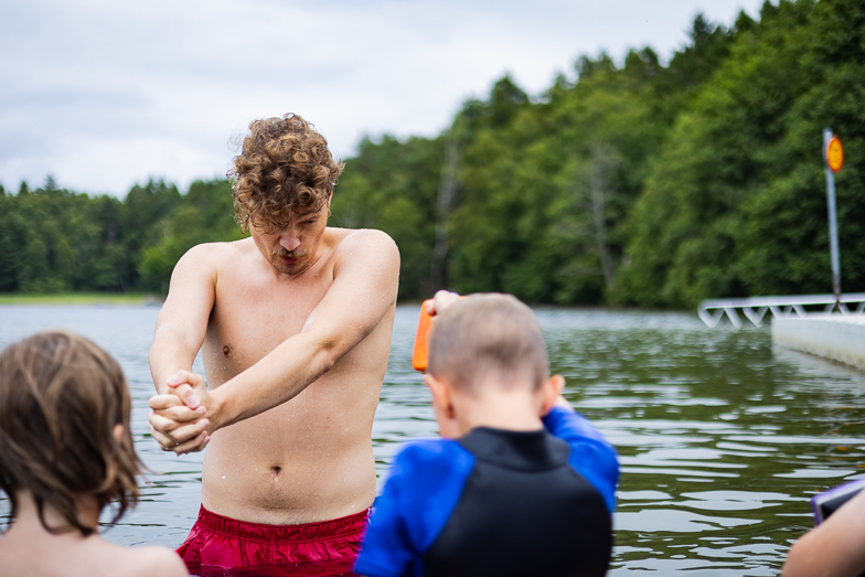 – Det är så många barn som inte kan simma men det är jätteviktigt att lära sig och en billig livförsäkring.” säger hon. Det är stor skillnad på att lära sig simma i en bassäng och i öppet vatten. Sjön kan verka läskig för de mindre barnen, speciellt när de inte ser bottnen, men det är i det här området som många barn kommer att vistas i sommar. Det vackra naturområdet kring Sisjön bjuder in till att spendera dagarna här och då är det viktigt att vara trygg i och omkring vattnet.
